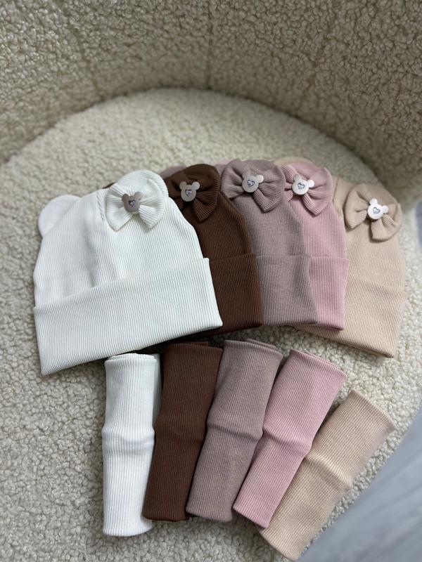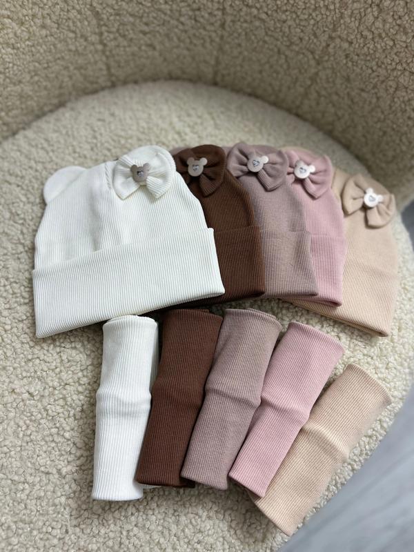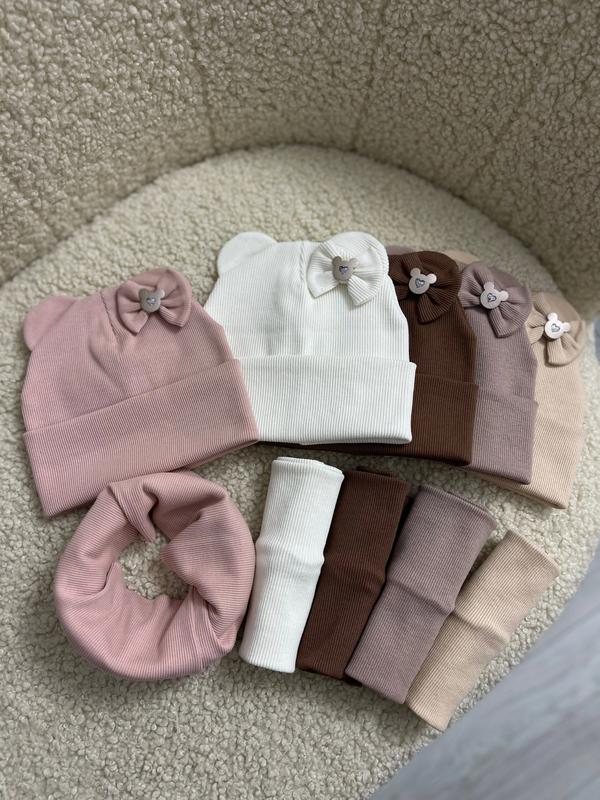 Набор шапка и хомут из двойного рубчика✔️Размер: 46-50Коричневый 2штМолочный 1штПудра 1штБеж 2штТемна пудра 2шт