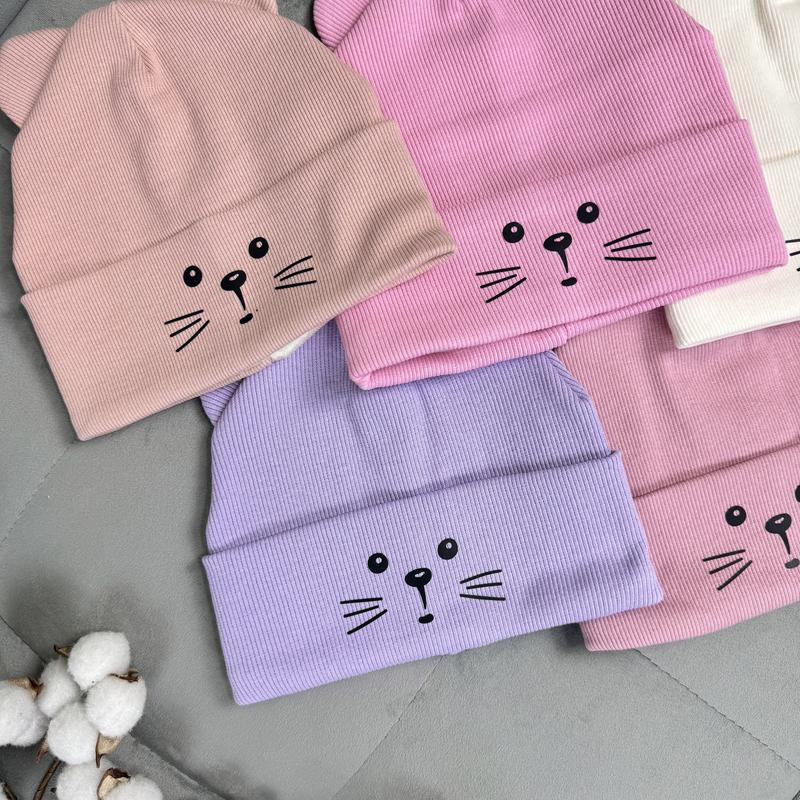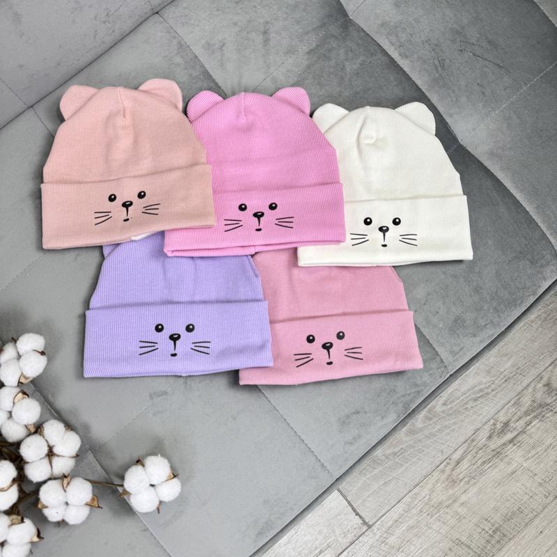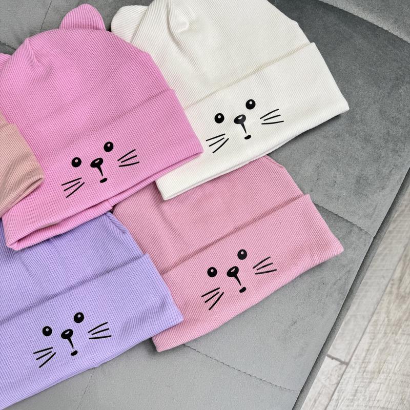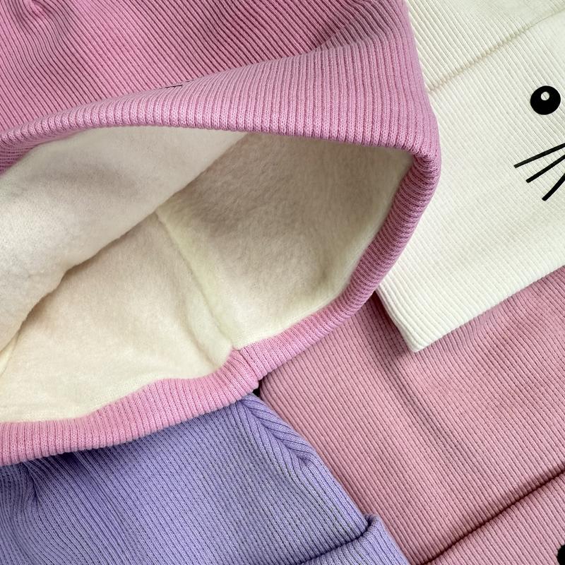 💕Шапка Мордочка с ушками для девочки. Рубчик с флисовой подкладкой. Рисунок приклеен.📐Замеры:(46-50)ориентировочно 1-4 лет - высота 18,5 /ширина 20
