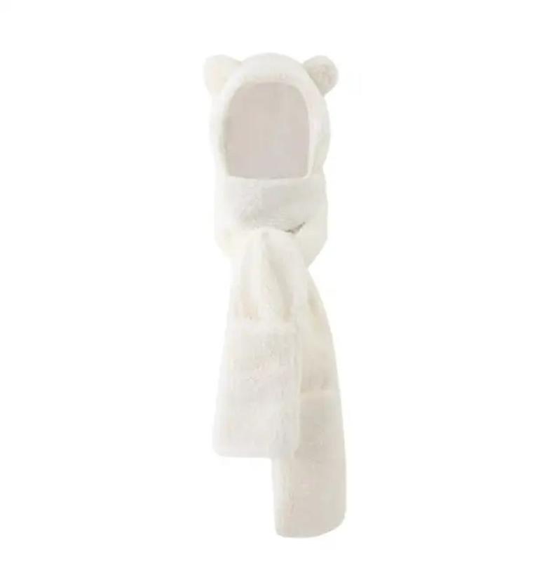 Шапка, шарф, варежки с ушками 3 в 1 (тедди, медведь, мишка, капюшон, карманы) белый, унисе...