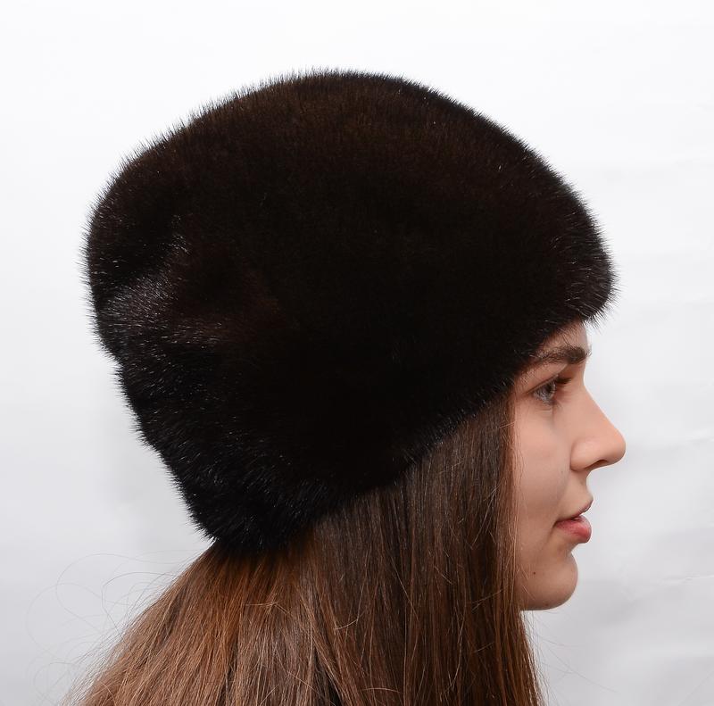 Женская зимняя норковая шапка, размер: от 54 до 60 см обхвата головы, цвет: Темно-коричневый, в наличии более 10 видов цвета норки, уточнять в лс.