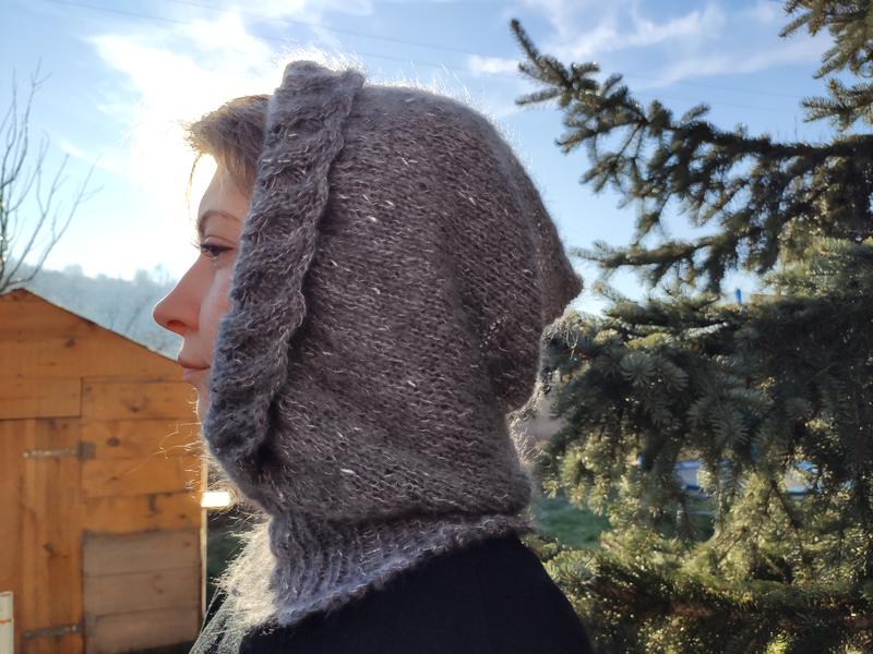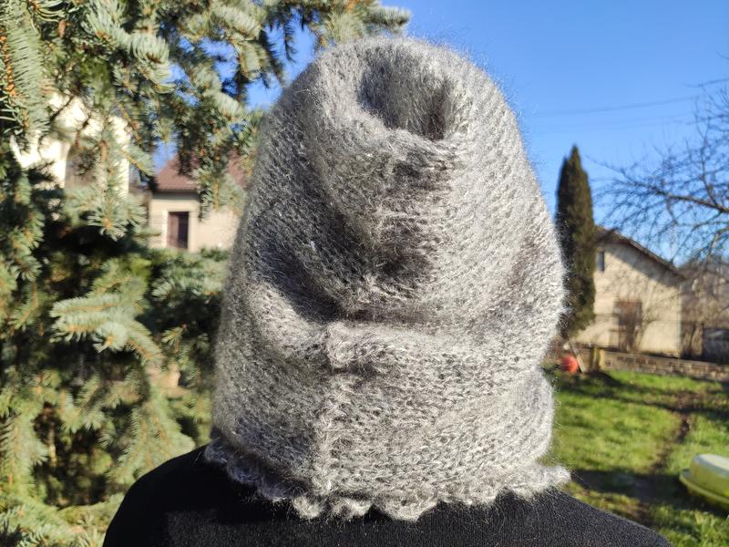 Розкішний, модний в цьому сезоні аксесуар - в'язаний капюшон. Шикарна модель з люрексом та мохером в складі нитки. Мохер з шерстю нададуть вам тепло, а люрекс буде ненав'язливо виблискувати на сонці. Розмір універсальний, ручна робота.