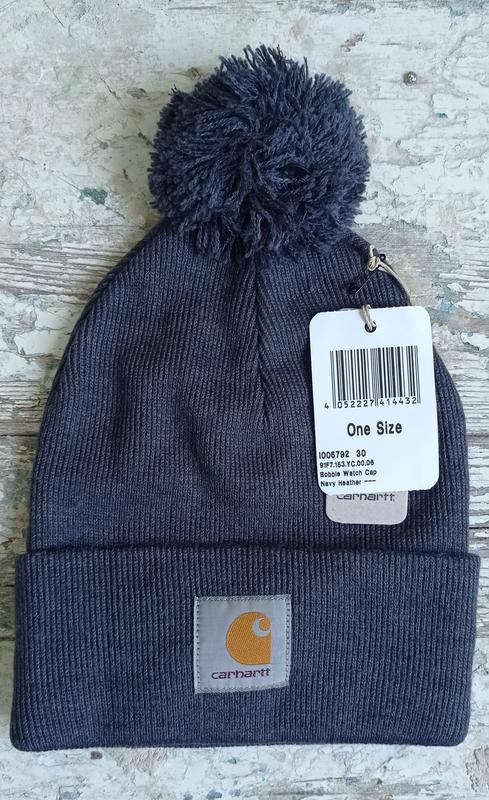 шапка Carhartt оригинал, модель Bobble Watch Hat, цвет- темно-синий, состав акрил, теплая и приятная к телу.