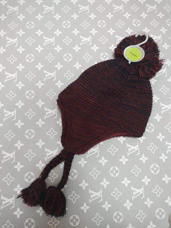 Новая шапка с косами, с помпоном на 3-6 лет. Цвет бордо меланж. Подойдёт как мальчику, так и девочке.Цвет и модель универсальные, унисекс. Замеры на фото.