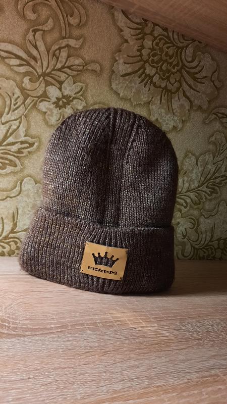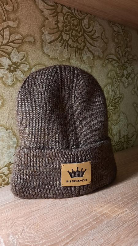 Тепла шапка з підворотом мокко капучіно беж коричневий