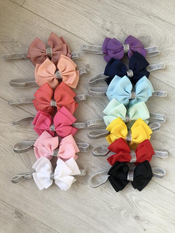 Бантик-обідок на срібній резинці для малечі💕 В наявності у різних кольорах🌈 Розмір від 0 до 6 місяців