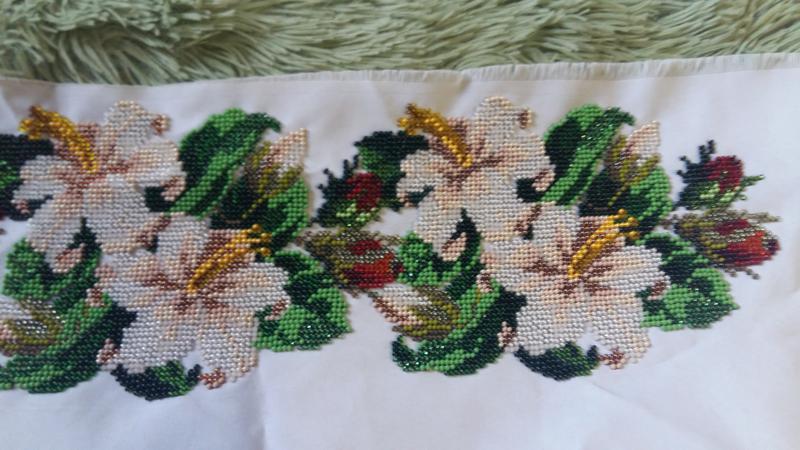 Заготовка из бисера. Можно сделать пояс, а можно вставкой на любую кофту или платье.
