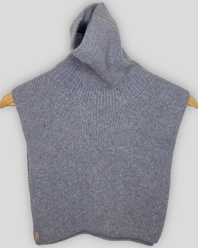 Вязаная манишка с высоким воротником. Можно выпрямить на всю длиннее или подвернуть, сделав двойной воротник. И сам отворот можно делать как внутрь, так и наружу. Перед и спинка удлиненные - под вырез пальто. В составе 10% кашемира и 90% мериносовой шерсти. Очень мягкая, нежная и теплая. Цвет серый меланж. Также в наличии цвет кемел, голубой, молочный, черный, бордовый. Размер универсальный - подходит любому. Ручная работа. Очень качественные материалы из Италии