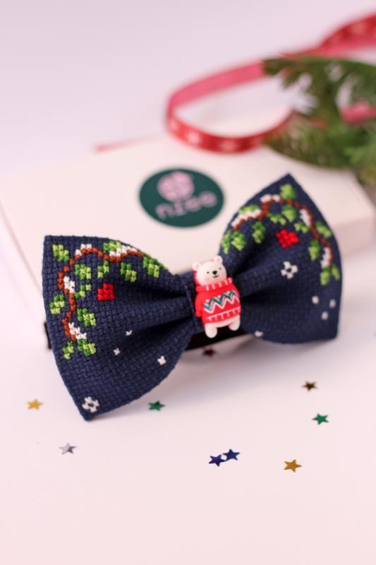 - Вышитая бабочка уже сформирована и сшита, ее не нужно самостоятельно завязывать.