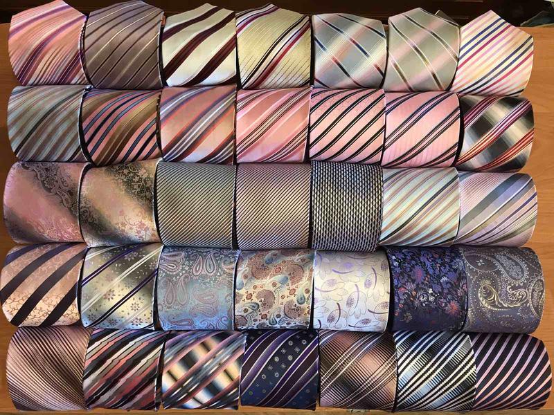 Основной фон: нежный серебристо-серый с атласным отблеском, который добавляет галстуку утончённого сияния при различном освещении.