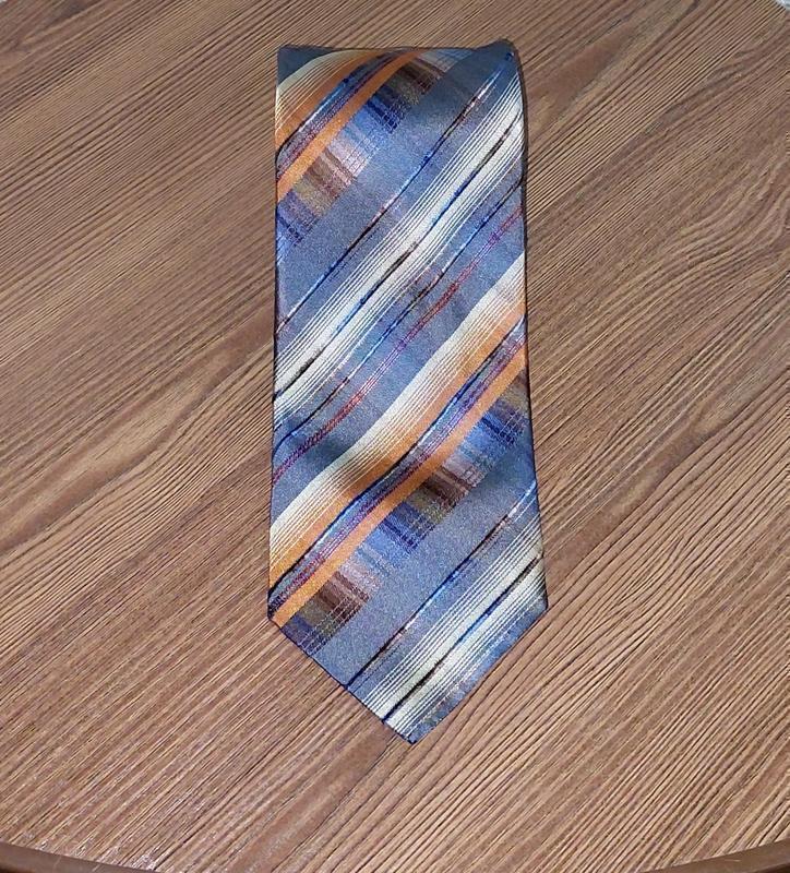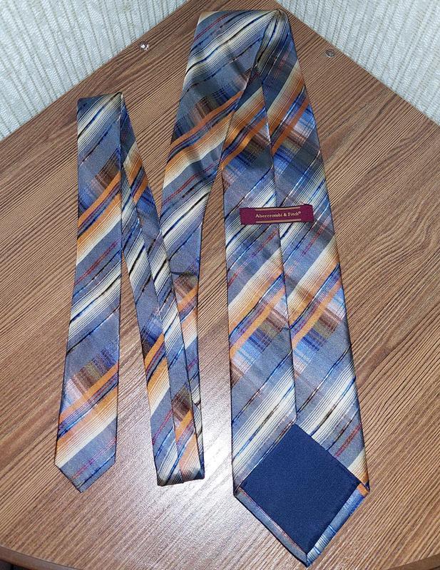 Роскошный шёлковый галстук в полоску Abercrombie&Fitch. Разноцветная полоска с переливом. Глубокий контраст между цветами создает гармоничное сочетание, необходимое для любого стильного гардероба.