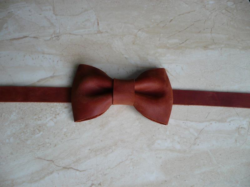 Галстук бабочка из кожи crazy horse, цвет бренди. Длина ремешка регулируется в трех положениях и фиксируется кнопкой. Ручная работа. Цена 270 грн