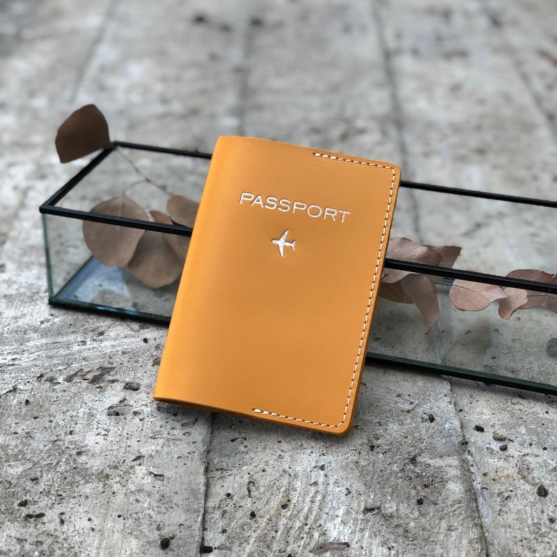 Обложка с серебряным тиснением из гладкой кожи kapri горчичный 10023