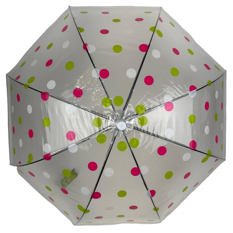 Детский прозрачный зонт-трость полуавтомат в цветной горошек от rain proof, с белой...