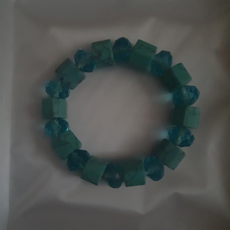 Очень красивый новый браслет бирюза и чешские хрустальные бусины на ювелирной силиконовой резинке. Размер универсальный, но идеально на полную или среднюю руку