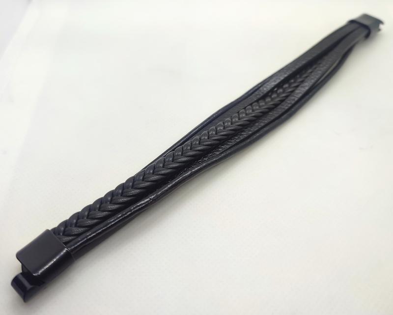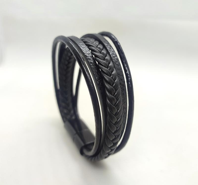 Многослойный плетеный браслет из натуральной кожи для мужчин черный.