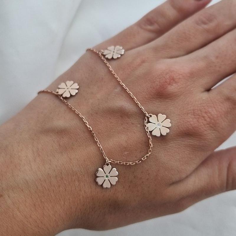 браслет с подвесками цветами можно комбинировать с другими позолоченными