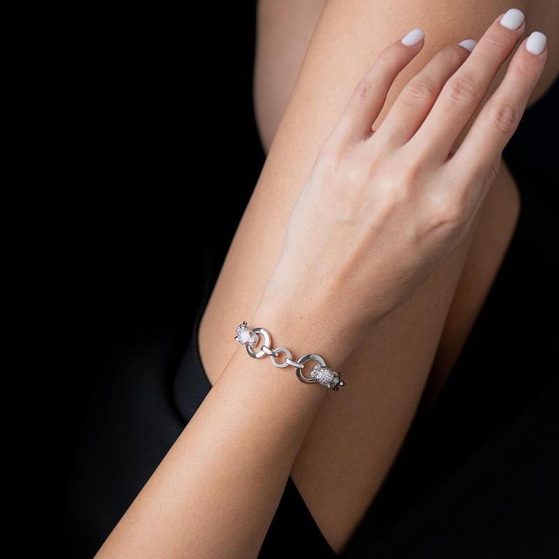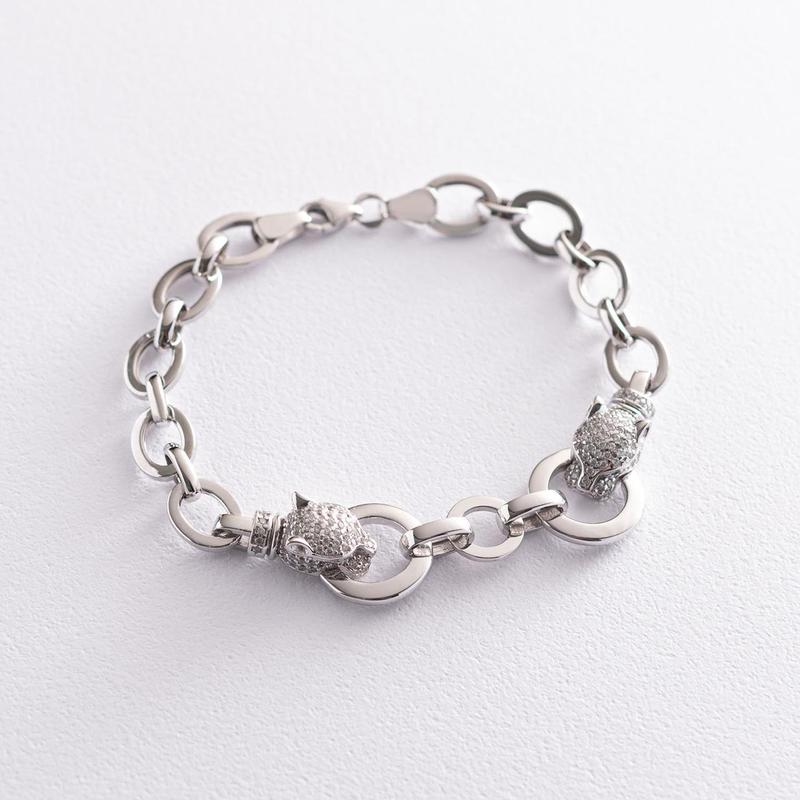 Золотой браслет "Пантеры" с белыми фианитами Металл: белое золото 585"Вставка: фианиты - 0.36 г Средний вес: 10.23 г
