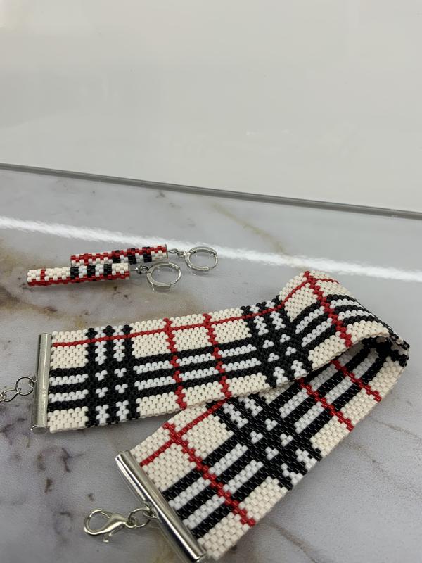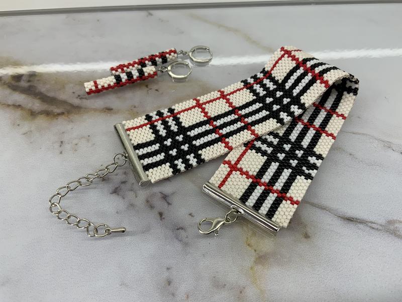Украшения выполнены из японского бисера мейки Браслет размером 18 см х 3 см и дополнительно удлинитель Серьги - декоративный элемент 3 см и застежка766