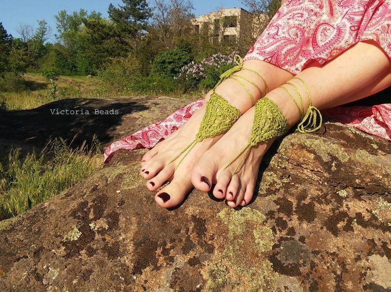 Летные ажурные босые сандалии связаные крючком. Элегантное бохо кружево прекрасно подчеркивает красоту ваших загорелых лодыжек. Вы будете выглядеть уникальной и стильной на отдыхе. Порадуйте себя нежной красотой.