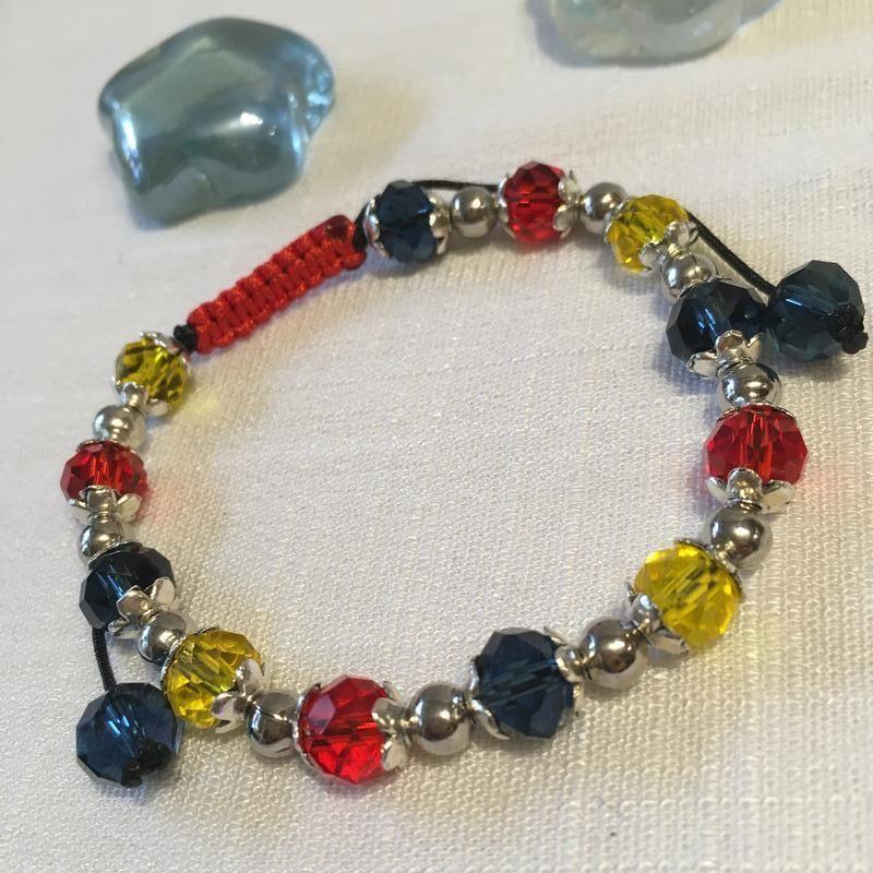 Яркий, необычный браслет шамбала из граненых прозрачных бусин «чешский хрусталь» и гладких металлических бусин. Привлекает внимание и поднимает настроение! Дополняют образ металлические обниматели. В качестве основы использован полиэстеровый шнур толщиной 1 мм. Застежка затяжная. Выдерживает сильное натяжение но резко дёргать нельзя. Размер браслета от 16 до 20 см. Дополнительные характеристики: Цвет : Желтый Материал : Бусины