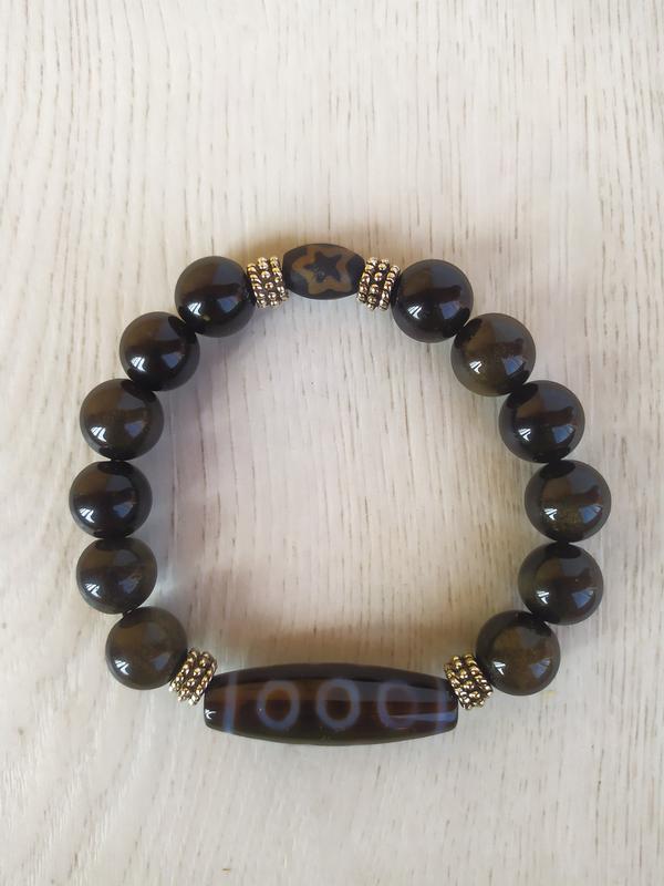 Браслет - талисман с тибетской бусиной дзи " 5 глаз " из обсидиана