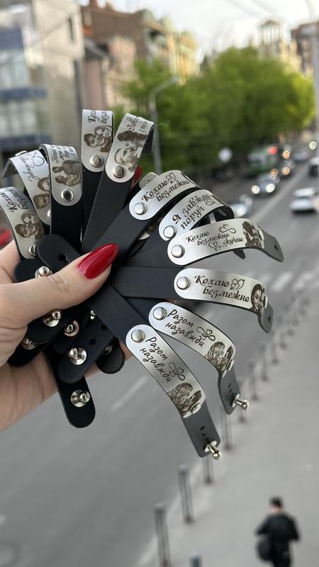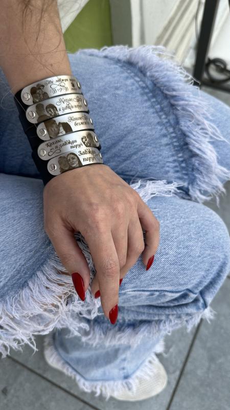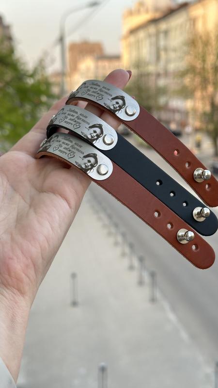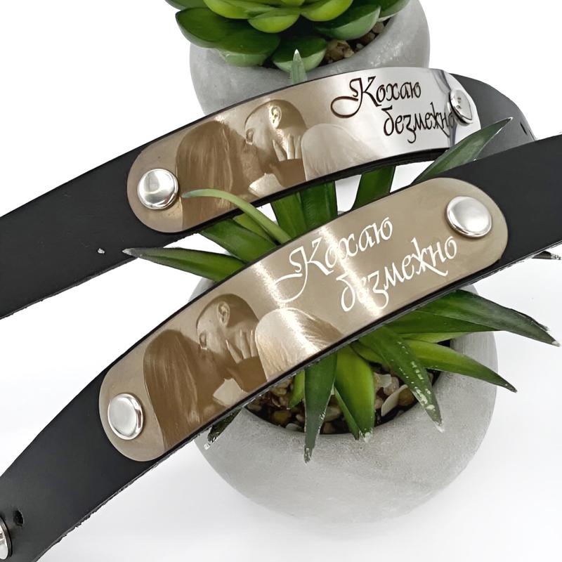 • Качественная кожа • Пластина – нержавеющая сталь • Персональная гравировка • Размер браслета индивидуальный • Застежка надежна • Собственное производство