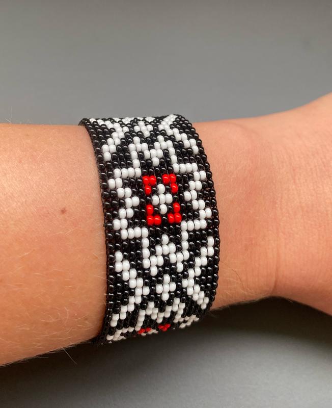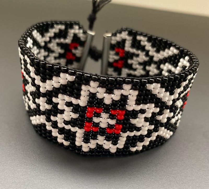 Украшение из чешского бисера.Длина полотна из бисера 17 см. +шнурочки для регулировки длины.Ширина 3 см.