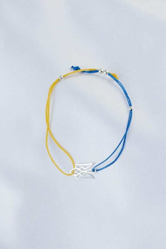 Браслет шёлковая нить с трезубом Серебро 925 проба. Вес серебра 0.56 гр. Размер вставки 15*10 мм А040бр