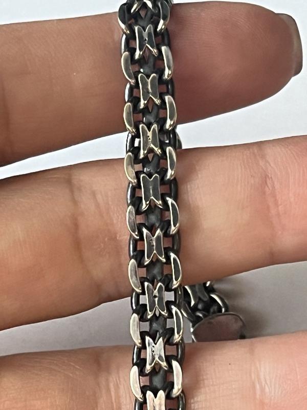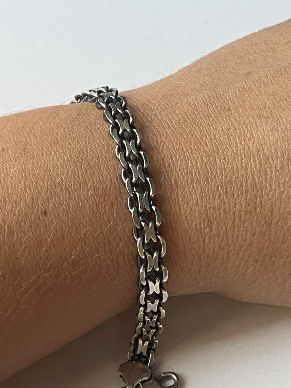 Серебряный браслет с чернением в стиле бисмарк, массивный, смотрится эффектно.
