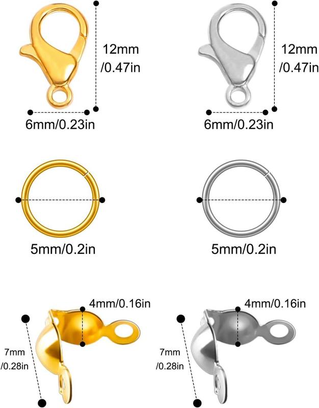 - ✅【Размер продукта】 Открывающий лук: 5 мм; застежка омаров: 6*12 мм; жемчужный наконечник: 7*4 мм. Сочетание аксессуаров и инструментов разных размеров облегчает изготовление ювелирных изделий своими руками или других ремесел.