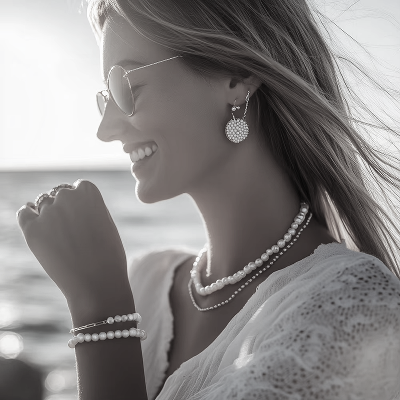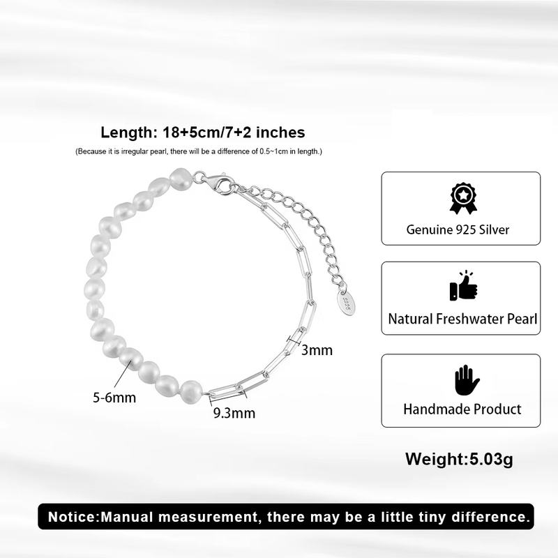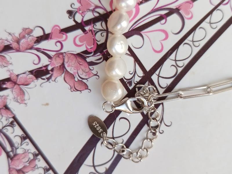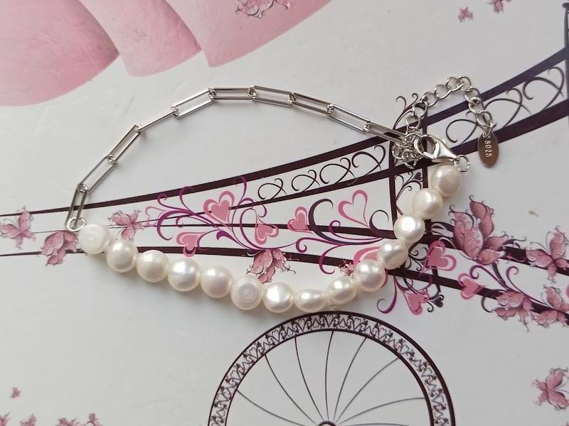 Новый серебряный браслет с натуральным жемчугом барокко. Металл - 100% серебро 925 пробы, покрытие родием. Длина 18 + 5 см. Вес 5.03 гр. Маркировка. Без бирки.