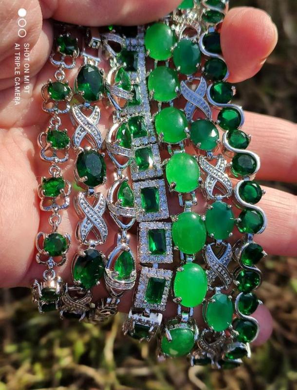 Большой выбор зеленых браслетов в год змеи Браслеты с зелеными камнями разные, с нифритом,финитом изумрудная, срезолитом, длина 18,18+2,5,надежная застежка с пробой 925 и без,резьбовая цена, запить Под браслеты есть наборы, колы, сердежки, еще много разных разных браслетов