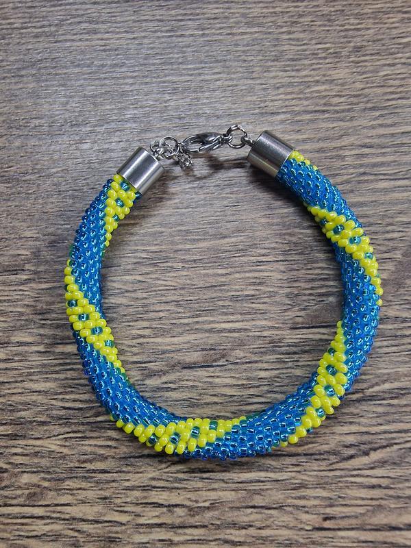 Браслет из бисера желто-голубой.