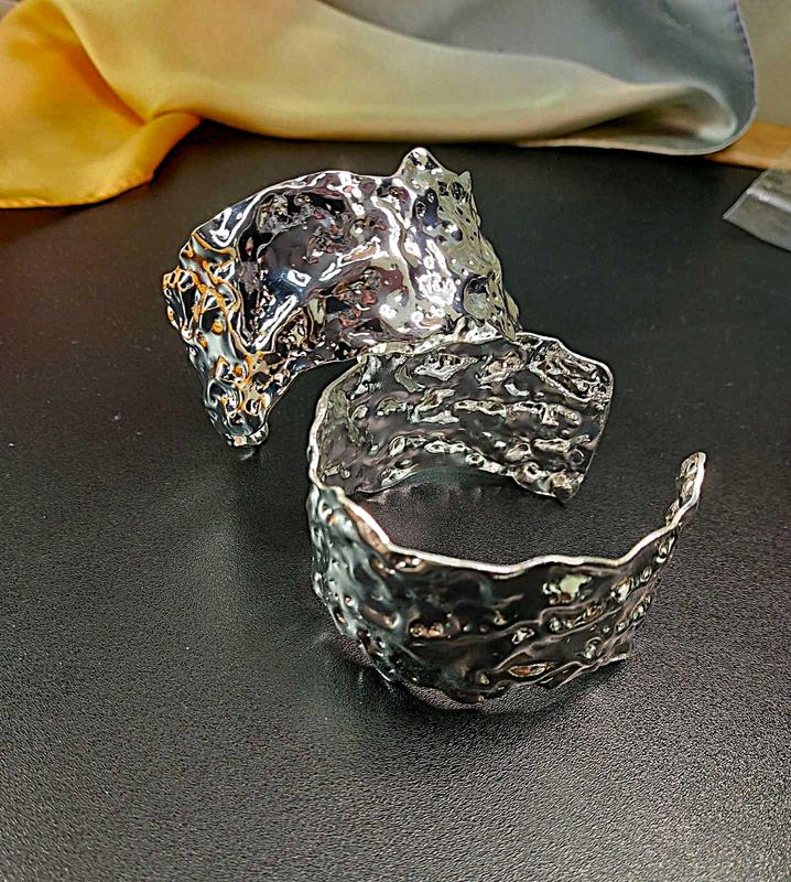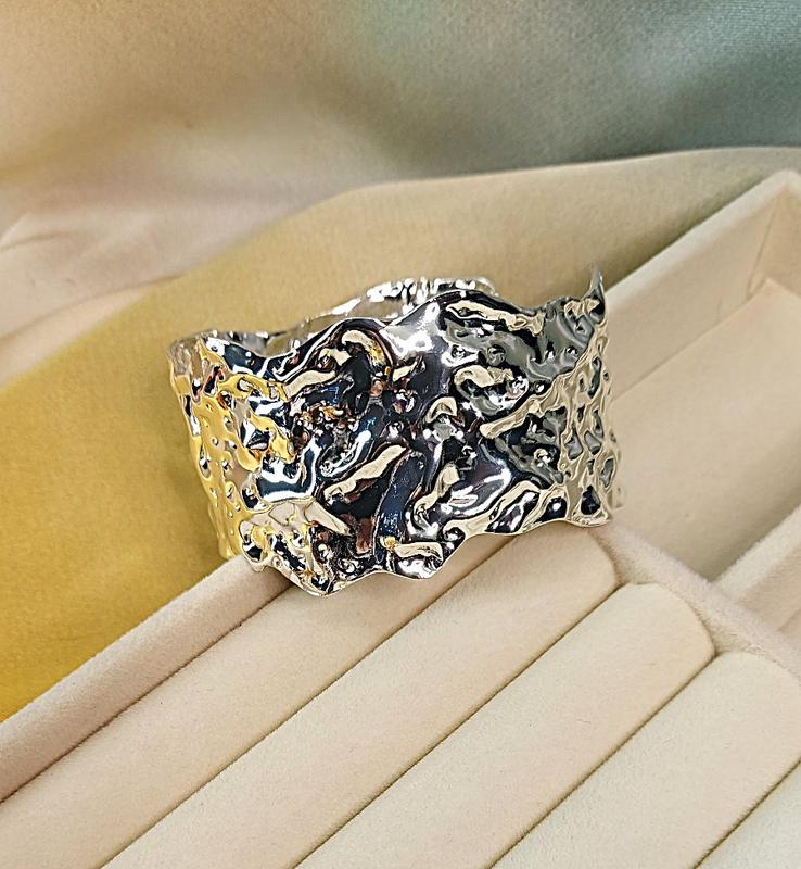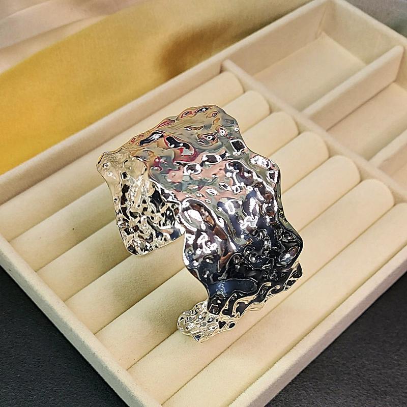 Браслет женскийСтильный браслет из сплава металлаШирокий, акцентный современный браслетТренд годабраслет кафа, не замкнутыйкруг браслета 18см (регулируется)ширина браслета 3.5 смУниверсальный серебряный цветдекоративная структура