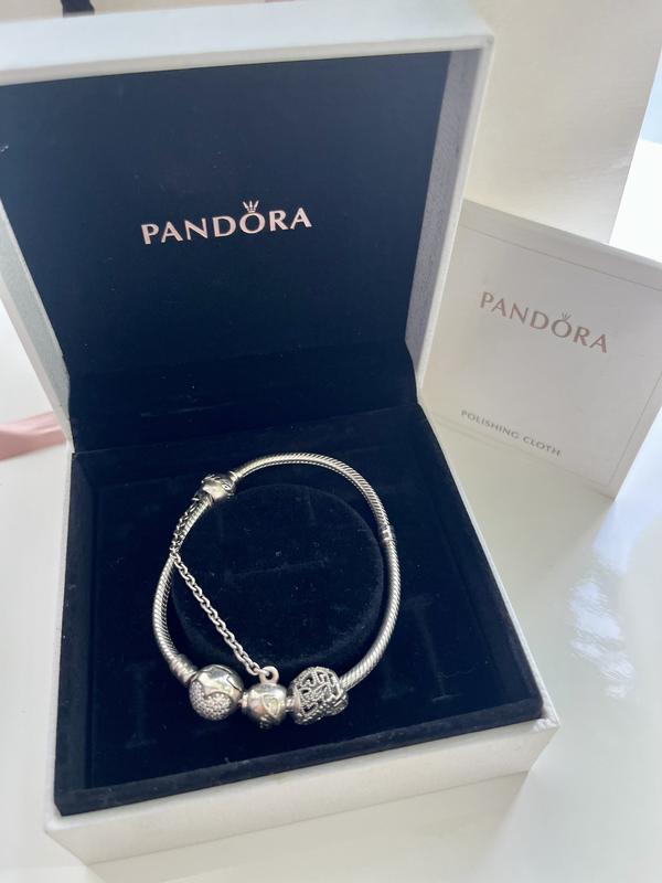 Браслет Пандора, идеальное состояние. В полном упаковке С шармом-защитой и двумя сердечками (family и с камнями)