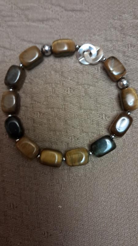 "Тигровой глаз",17-18р.,очень интересная застежка ювелирка.Серебр и бусины-натур.гематит
