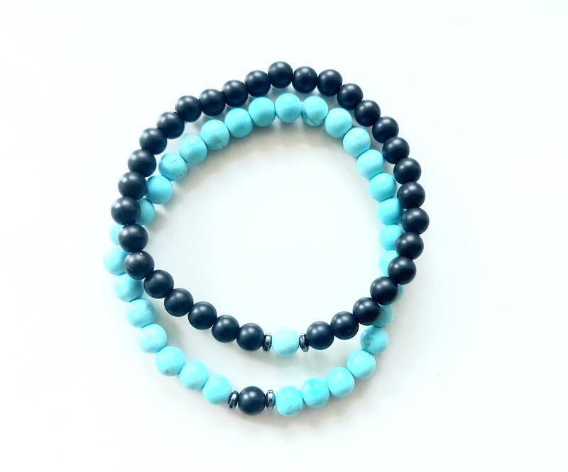 набор браслетов материал изделия-матовый оникс,бирюза,гематит. эластичная нить для браслетов длина-20см размеры бусин-0,6см браслети тягнуться ціна вказана за 2шт продаются парой ном-30АМ