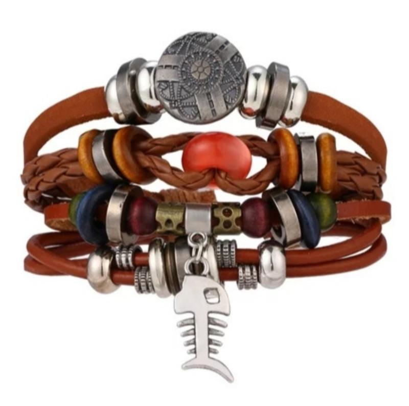 Стильный мужской браслет из кожи рыба оригинальный молодёжный кожаный браслет