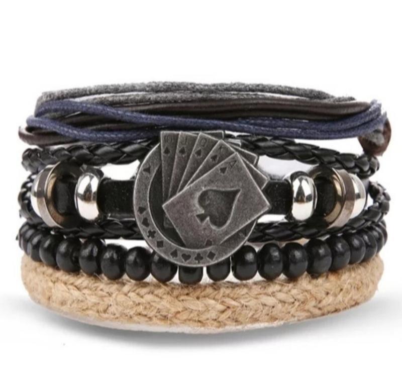 Стильный мужской браслет из кожи карты оригинальный молодёжный кожаный браслет