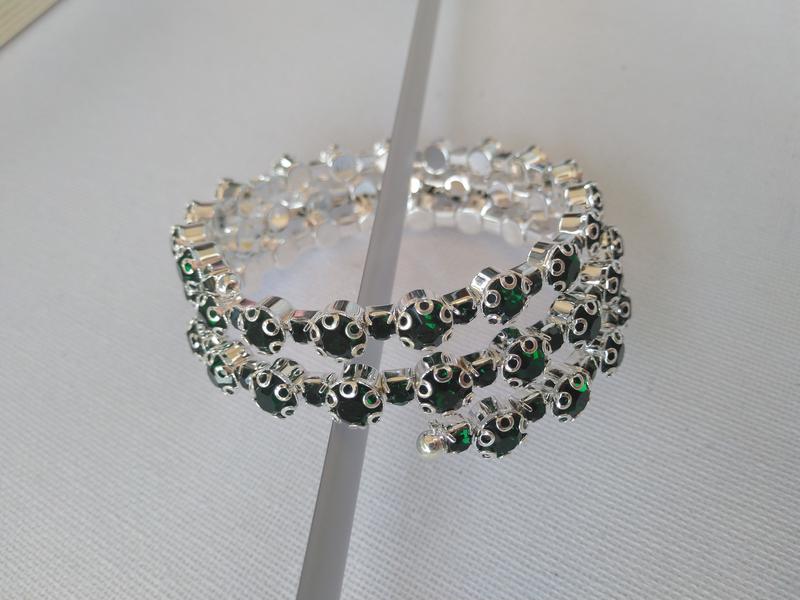Серебристый браслет с зелеными вставками