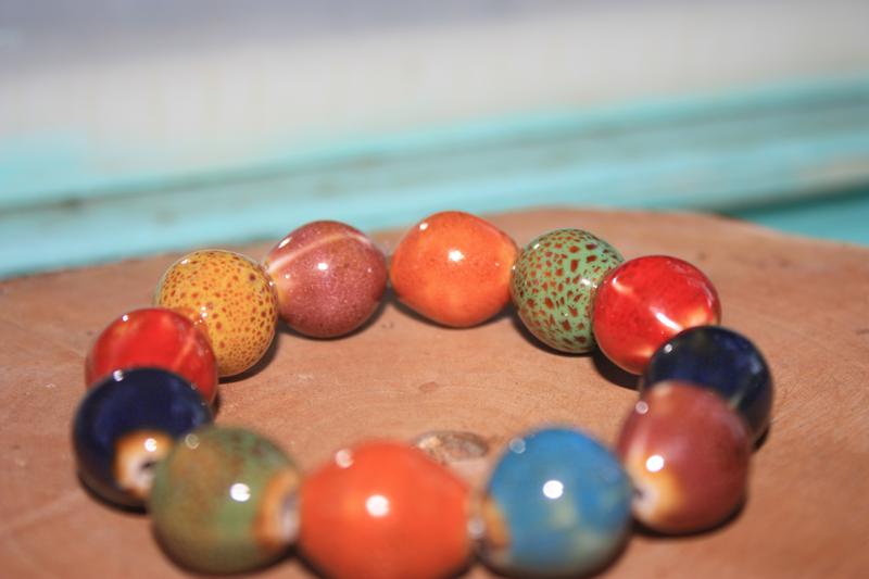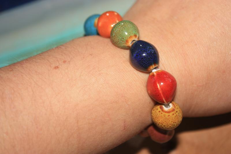 Браслет с шикарными керамическими бусинамиНа резинке, тянется.