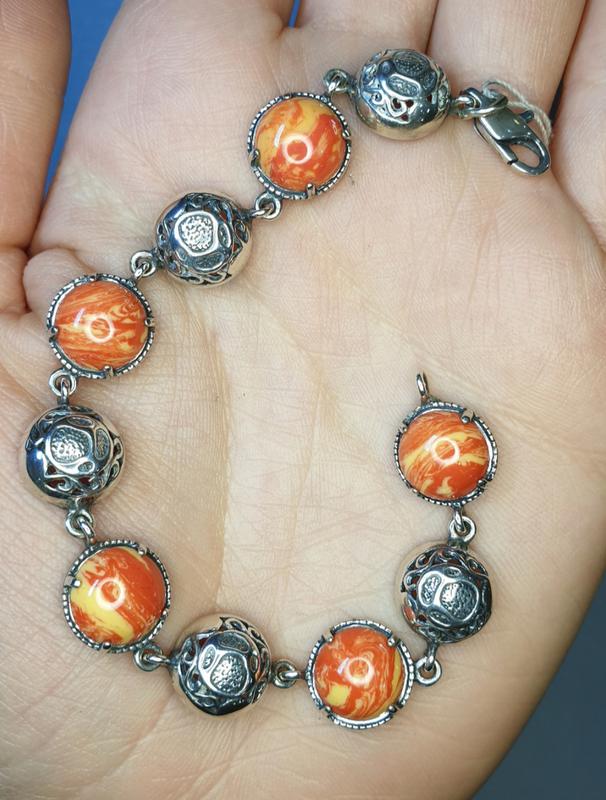 Вставки: коралл имитация. Проба серебра ― 925°, клеймо Пробирной службы.Вес ― 13,82 грамма.Размер: 18Арт 4048