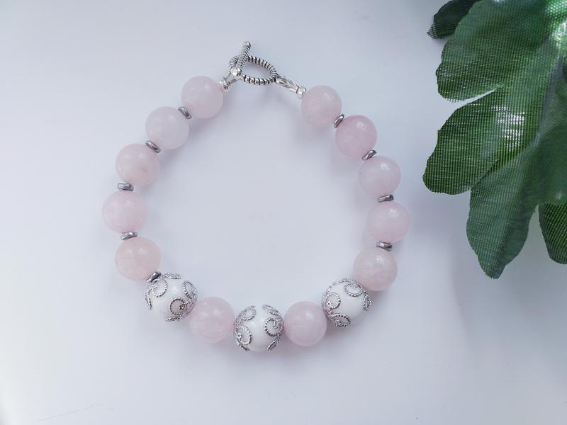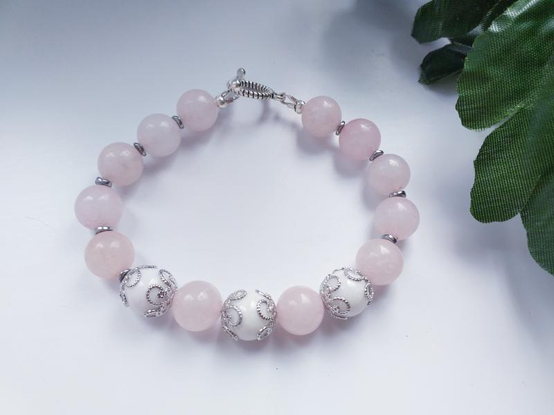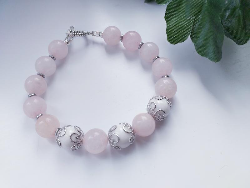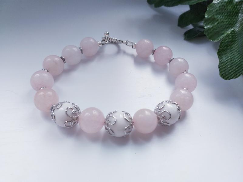 Браслет из розового и белого кварца
