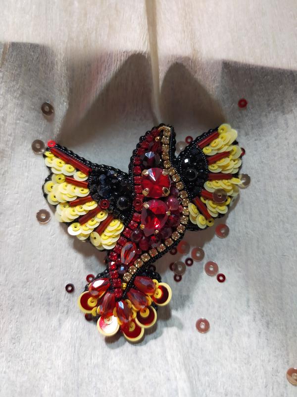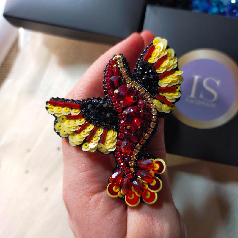 Брошка птичка, брошь из бисера, брошка с перьями, брошка з бісеру, брошка тукан
