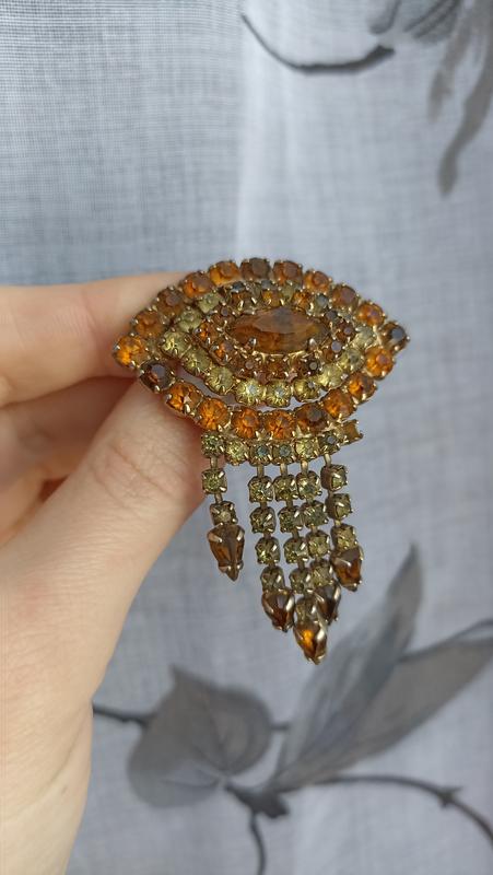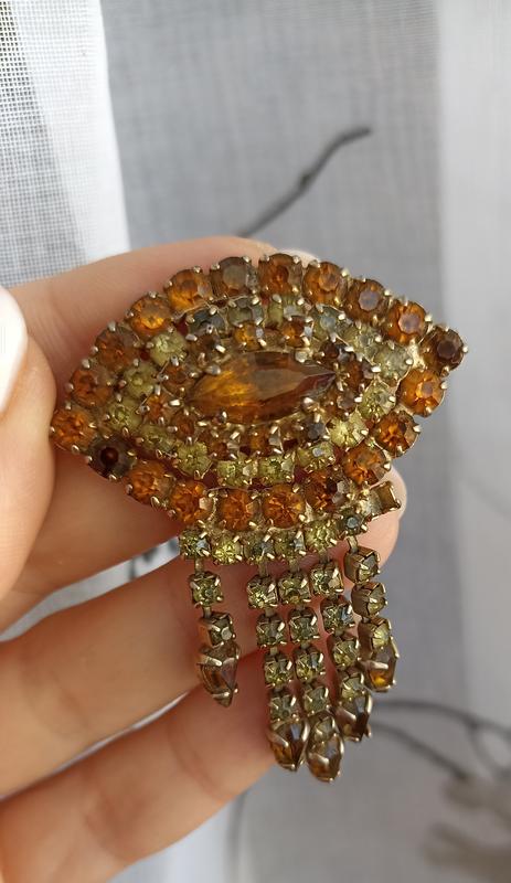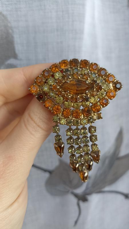 Невероятной красоты винтажная брошь с подвесками!! Кристаллы теплых и солнечных цветов!