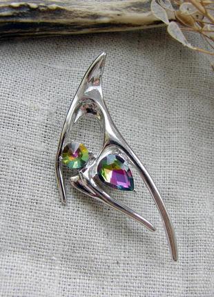 Абстрактная серебристая брошь с мистик топазом стильная современная брошка цвет серебро