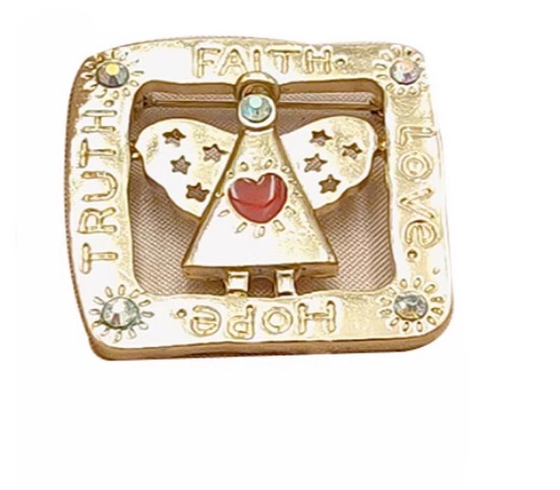Брошка ангел в рамці з написами і емаллю біжутерія бренд