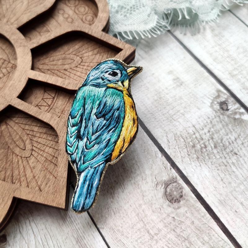 Миниатюрная брошь выполнена в авторском дизайне, вышита гладью хлопковыми нитями.