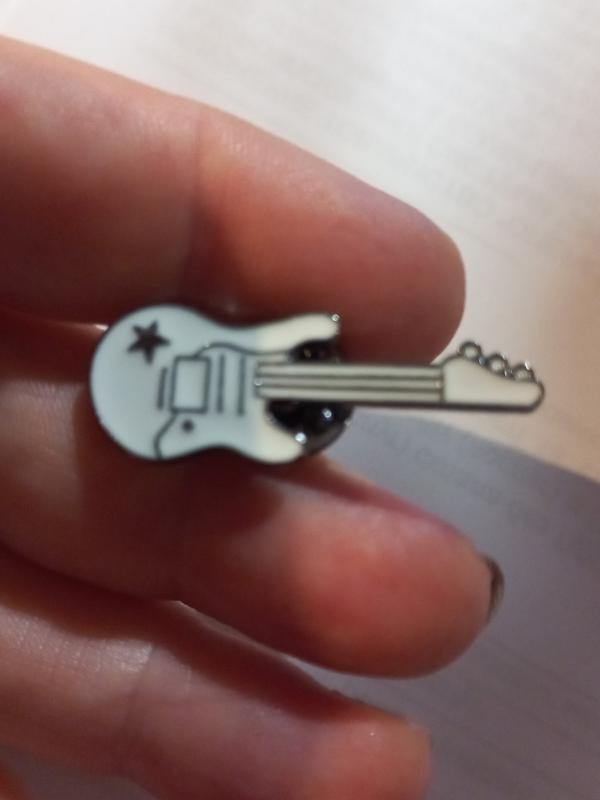 Брошь брошка пин значок металл белая эмаль гитара