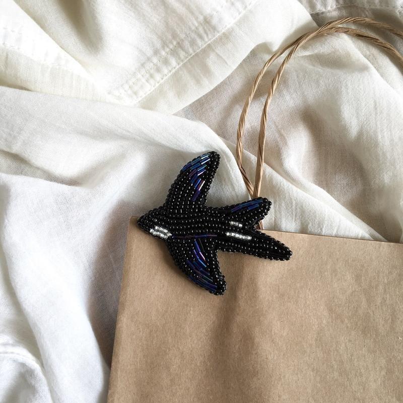 Брошка птичка, брошь из бисера, брошка ласточка, брошка з бісеру, брошка ластівка